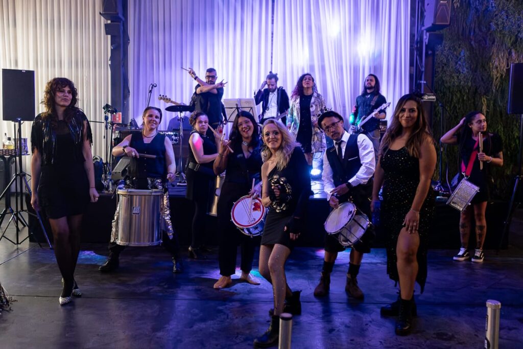 Nós temos um repertório de 50 músicas para você escolher o melhor formato, entre 20, 30 ou 40 músicas. E a bateria com 6, 10 ou 15 pessoas tocando. Você escolhe!